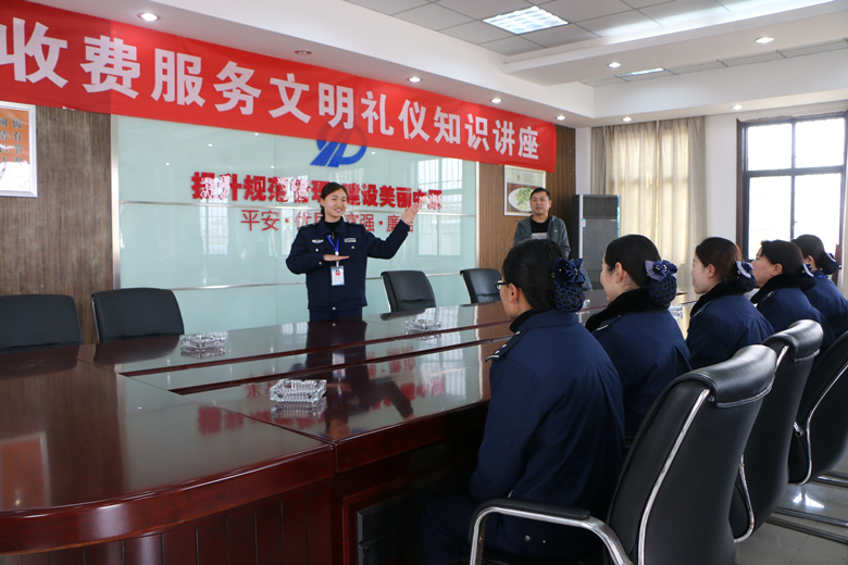 新郑拜祖大典举行在即,为向海外华人华侨充分展示河南对外窗口良好形象,近日,中原高速郑开分公司组织开展了收费文明礼仪专项培训,要求新老员工提升微笑、文明服务标准,快速牢记“一迎、二收、三唱、四操作、五找零、六送别”收费流程;微笑迎接每一位司乘,主动点头微笑示意,及时抬手问候,合理调整服务过程中的语气、神态,做到语速语调平缓、面带微笑、吐字清晰,以最美的微笑、最真诚的态度、最优质的服务迎接八方来客。(中原高速)