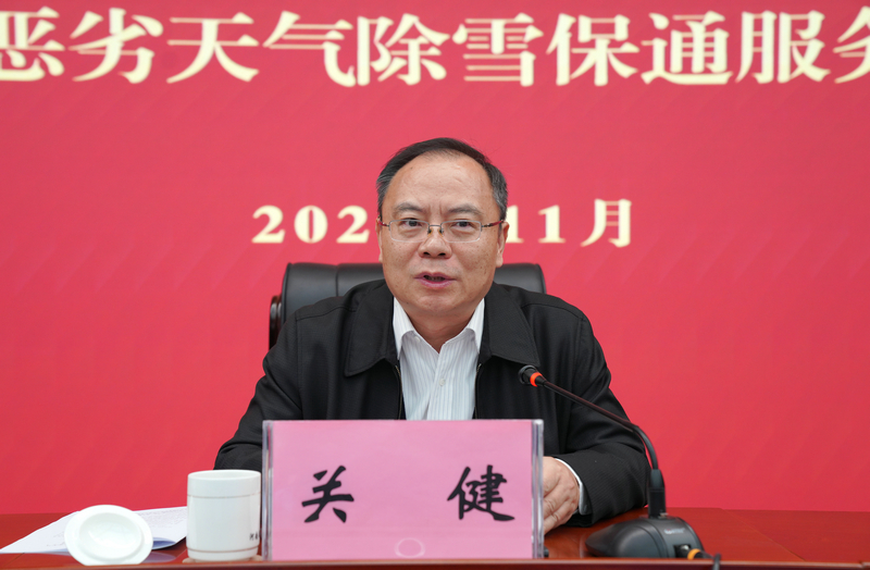 关健总经理在讲话中充分肯定了各单位运营管理工作和除雪保通准备情况,并提出四个方面的工作要求:一是提高站位,统一思想,深刻认识除雪保通服务工作的重要意义。各单位要深入学习贯彻习近平总书记在河南考察时的重要讲话精神,聚焦“两高四着力”,坚守初心使命,扛牢政治责任,以除雪保通成效彰显集团发展成色与品牌价值,为推进现代化河南建设贡献交投力量。二是正视形势,保持清醒,准确把握打赢除雪保通服务攻坚战的风险挑战。要摒弃经验主义和侥幸心理,准确研判极端天气、路网扩张、社会期望带来的严峻考验,以应对“最坏天气”的万全准备化解“最复杂局面”的极端风险,确保公众“走得了、走得好”。三是聚焦重点,明确任务,全面构建除雪保通服务的实战体系。要构建“先于冰雪”的主动预防体系,让预警研判成为战胜冰雪的“制胜先手”;要构建“高效协同”的一体化作战体系,形成“主力攻坚、对口增援”除雪保通整体合力;要构建“人民满意”的服务保障体系,以“五有”服务标准提升公众出行服务体验。四是压实责任,强化担当,确保各项工作落实到位。各单位要以钉钉子精神推动各项部署落地见效,细化不同情况下的具体应对措施,明确责任分工,确保“事事有人管、人人有专责”。党员干部要靠前指挥、挂帅出征,确保心中有底、手中有策、行动有力。