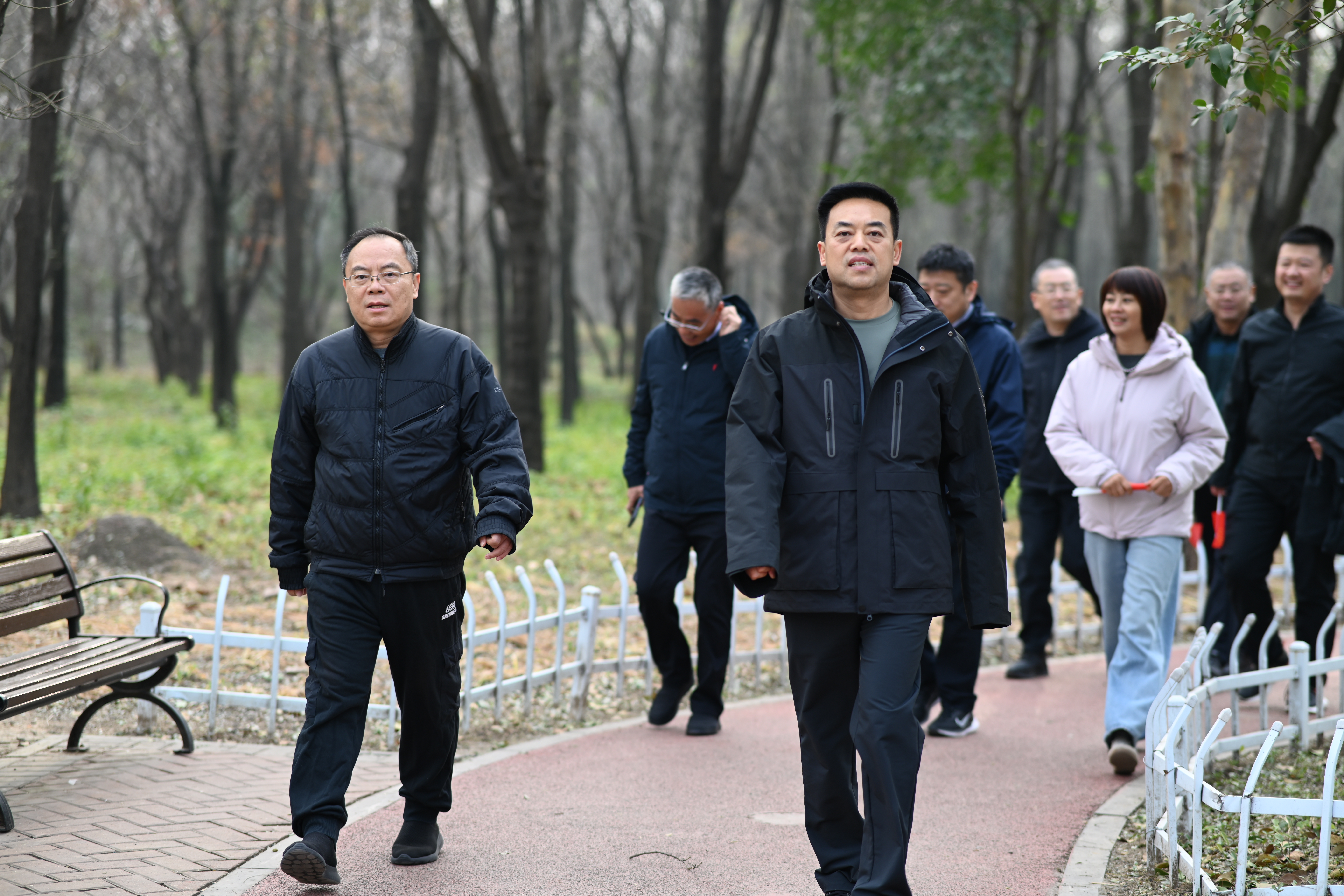 随后,金雷董事长宣布健步走活动开始,关健总经理鸣响发令笛,健步走活动正式拉开帷幕。大家精神抖擞、意气风发,沿着5公里步道稳步前行。初冬的微风带着丝丝寒意,却挡不住干部职工们如火的热情,一路上欢声笑语不断,彼此鼓励、互相照应,形成了一道靓丽的风景线。整个活动过程井然有序,气氛轻松愉快,充分体现了集团总部干部职工队伍良好的身体素质和积极向上的团队形象。