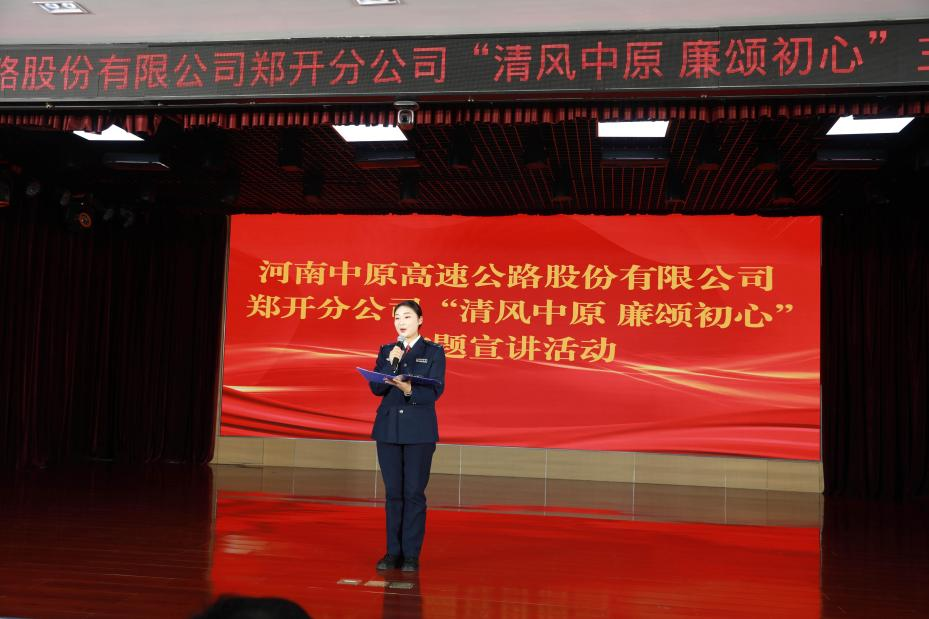 12月12日,中原高速纪委在郑开分公司开展以“清风中原、廉颂初心”为主题的廉洁宣讲活动,通过讲述身边廉洁故事、传承清廉之风,为全体党员干部注入精神动力,推动廉洁警示教育走深走实。