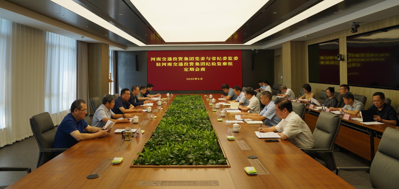 8月19日,驻集团纪检监察组与集团党委召开全面从严治党会商会议。集团党委书记、董事长付磊主持会议并讲话,省纪委监委驻集团纪检监察组组长季庆出席会议并讲话。集团班子成员结合自身工作实际依次作发言。驻集团纪检监察组副组长、室主任参加会议,集团综合事务办公室、党委办公室、人力资源部、党委巡察工作办公室、法律事务部等部门负责人列席会议。